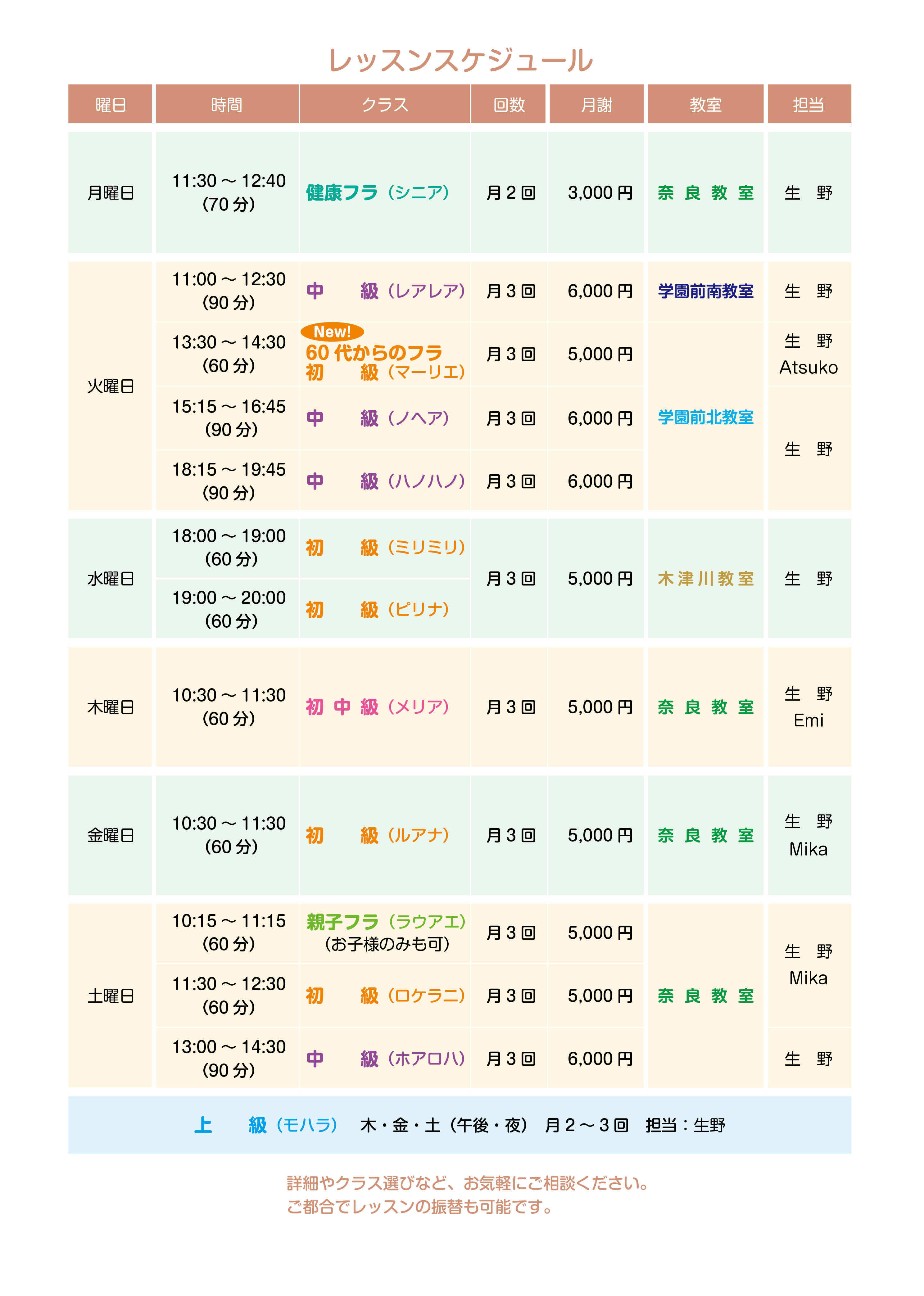各教室とレッスン
